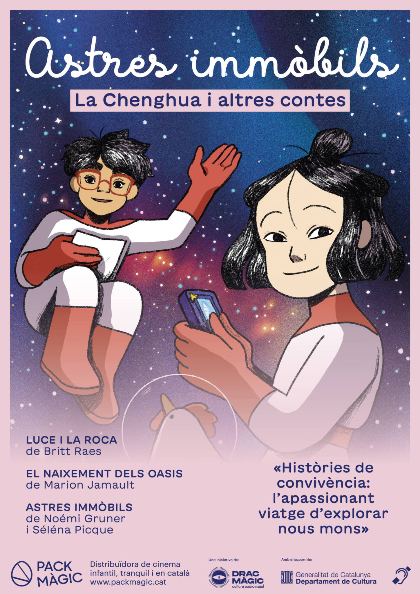 Astres immobiles raconte l’histoire de Chenghua, une fille de neuf ans passionnée par l’espace, qui traverse des difficultés avec sa famille, car ses parents, nés en Chine et résidant en France, ont besoin qu’elle traduise tout pour eux.