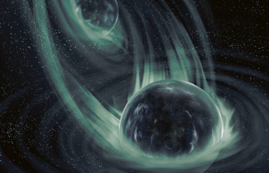 Illustration : Recréation de deux trous noirs avant la collision – Mikel Rodriguez – 2018