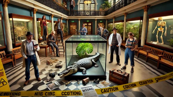 Mettez à l’épreuve vos capacités de déduction pour enquêter sur la disparition d’un des crocodiles de l’exposition du Musée.