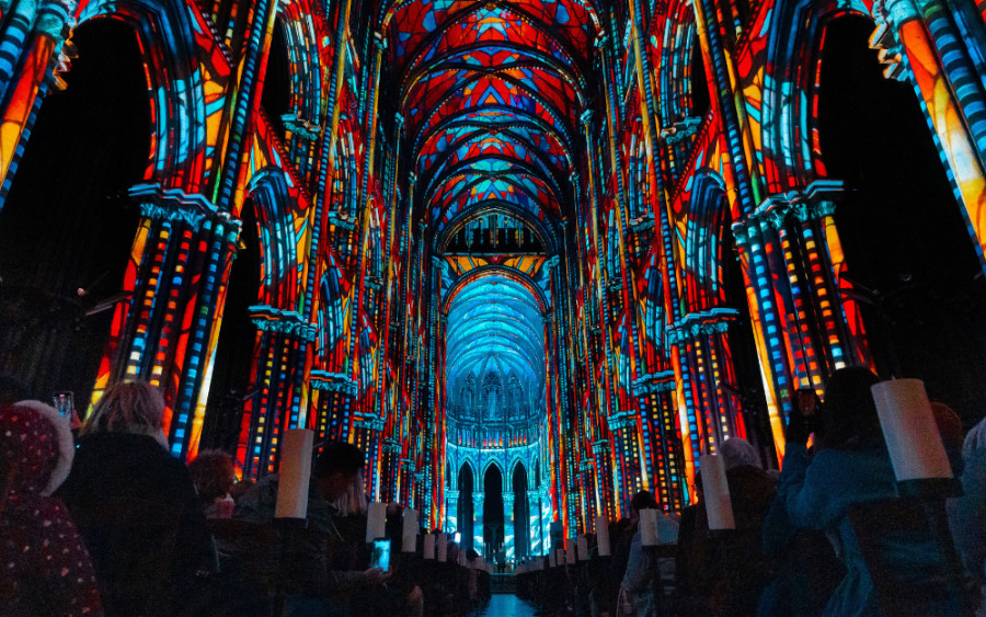 LUMINISCENCE est un spectacle immersif à la Basilique Santa Maria del Pi à Barcelone, qui propose un voyage à 360° dans l’histoire du lieu avec projections vidéo, musique et narration. La durée est d’environ 50 minutes et l’expérience est adaptée à tous les publics, y compris les enfants de moins de 4 ans (assis sur les genoux d’un adulte).