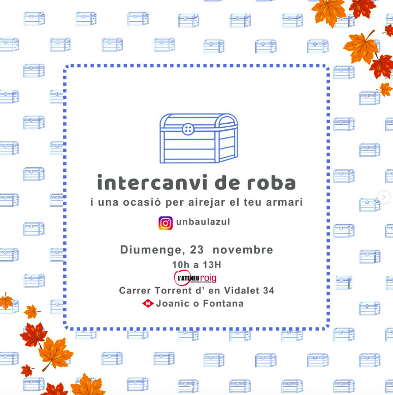 Un événement d’échange de vêtements aura lieu le dimanche 23 novembre à l’Ateneu Roig. Chacun peut y apporter des vêtements en bon état et repartir avec ce qu’il souhaite. L’objectif est de promouvoir la mode durable et la réutilisation