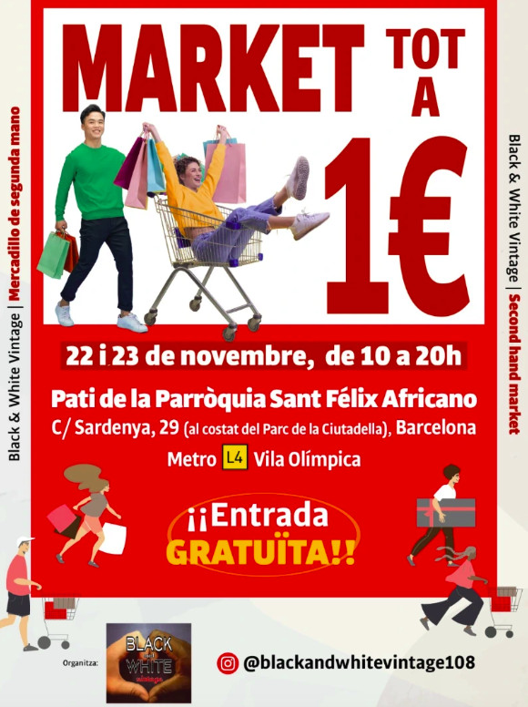 Un marché où tout coûte 1 € se tiendra les 22 et 23 novembre à Barcelone, près du Parc de la Ciutadella (Carrer Sardenya 29).