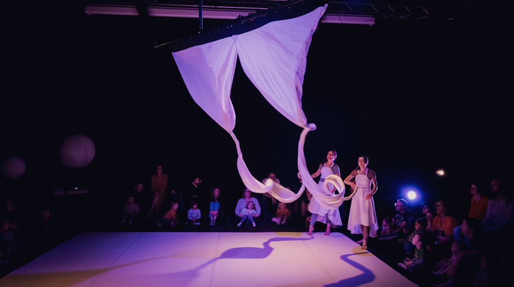 Un spectacle immersif pour les jeunes enfants, axé sur les sens (vue et son), favorisant l’exploration et la découverte en famille.