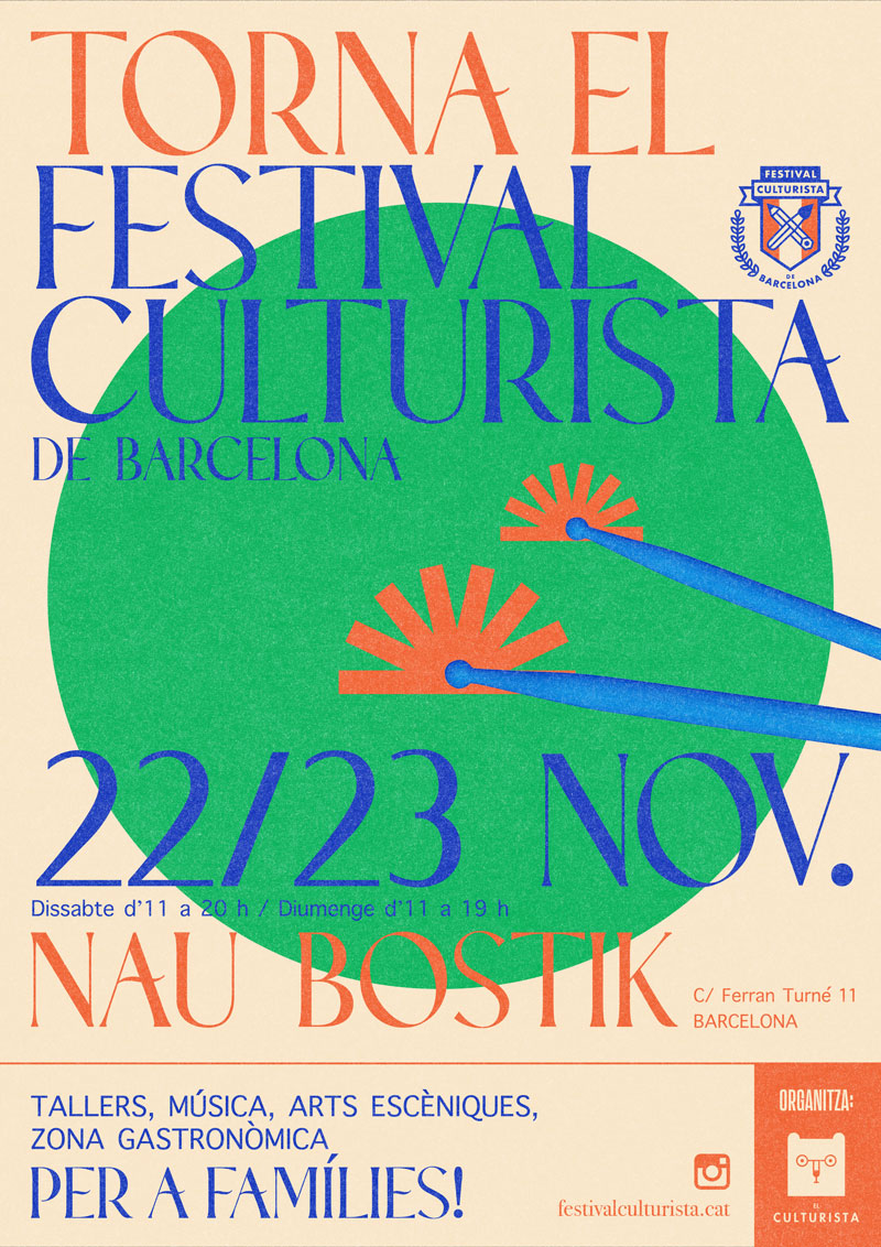 Le Festival El Culturista propose les 22 et 23 novembre à la Nau Bostik des activités culturelles pour toute la famille : concerts, spectacles, ateliers, espace gastronomique et boutique éphémère. L’entrée est gratuite, tandis que l’inscription aux ateliers coûte 3,50 € par enfant avec un adulte accompagnant.