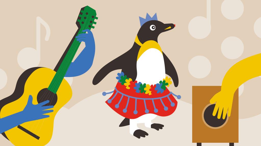Une activité participative pour enfants autour d’une pingouine voyageuse qui découvre les cultures et la diversité, avec chants, jeux et une fête finale sur de la rumba catalane.